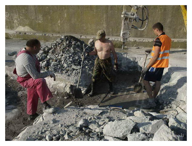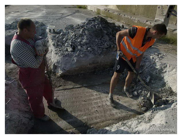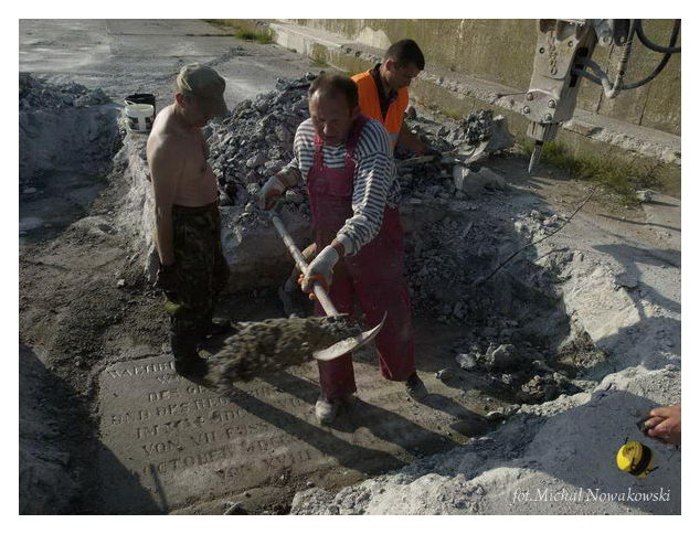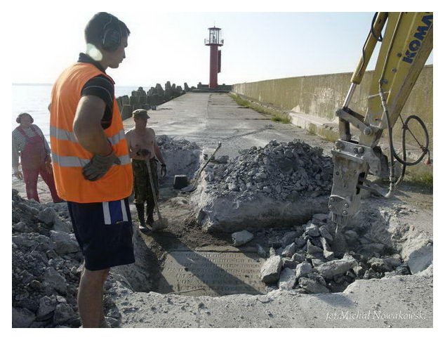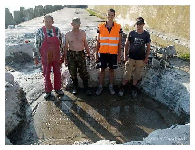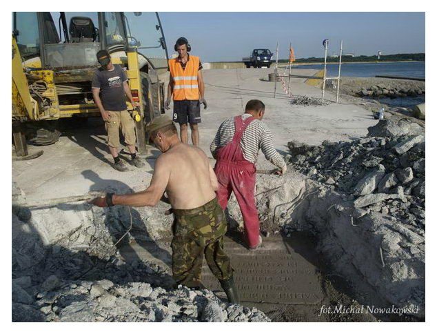 Opis: Odnalezienie tablicy pamiątkowej na falochronie - lipiec 2013 r. - Świnoujście